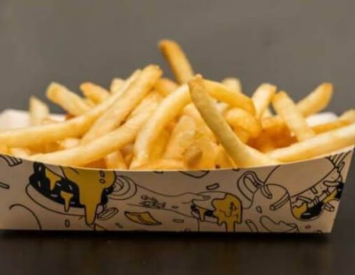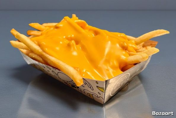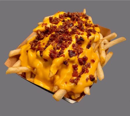 Shoestring Fries Loaded With House Signature Cheese Sauce and Bacon Bits