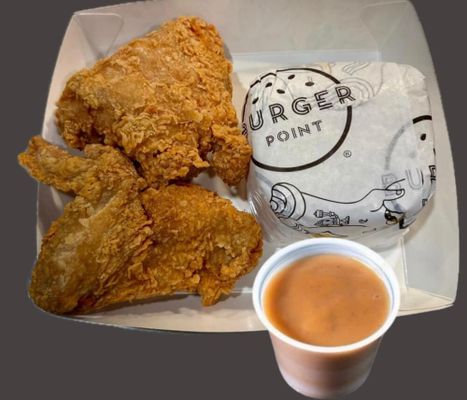 Spicy Southern Fried Chicken Tenders, Shredded Iceberg Lettuce, Pickles, BP Signature Chilli Mayo Sauce