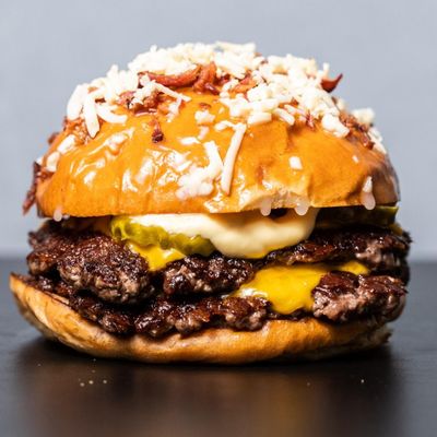 Handcraft Angus Double Beef Patty, Maple Bacon, Double American Cheese, BP sauce and Pickles (contains pork)